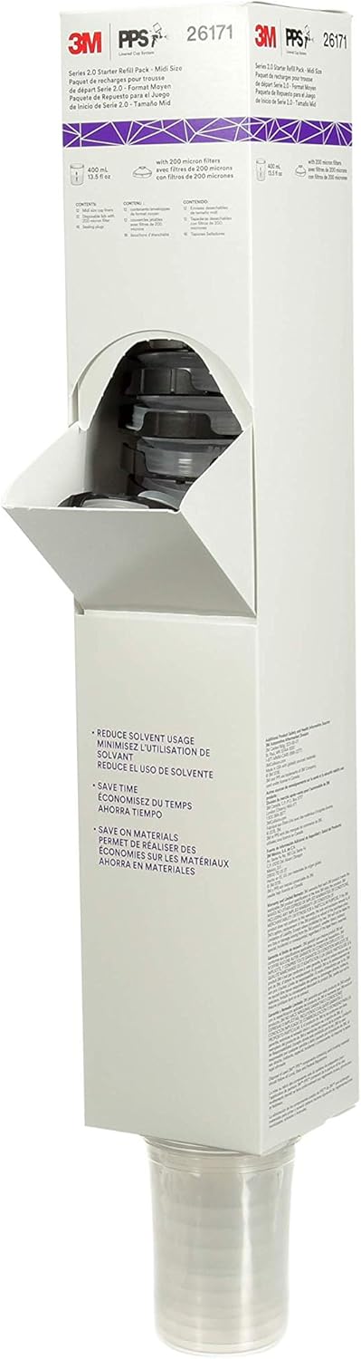 | Model Name | 3M PPS Series 2.0 Paint Spray Gun System Refill Kit with Lids and Liners, 26171, Midi, 13 oz, 200-micron Filter |
