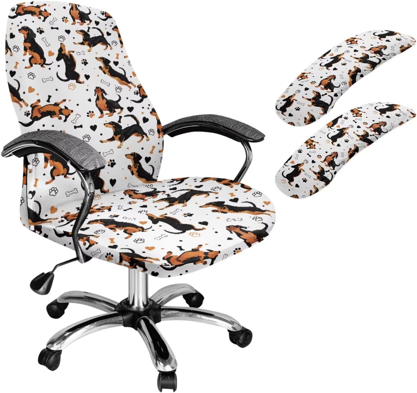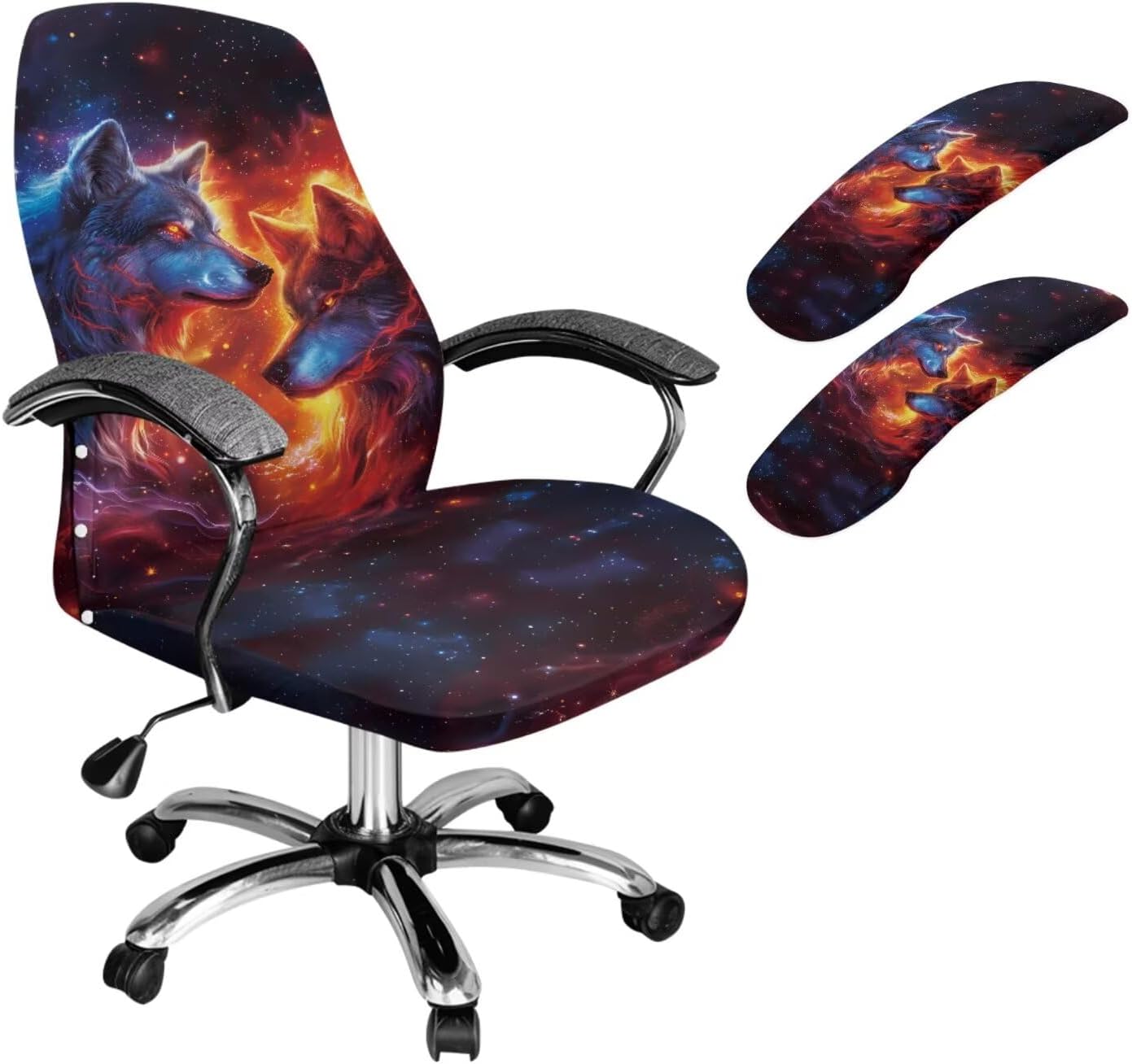 Package includes: 1 x office chair cover 2x chair elastic armrest cover Our office seat cover is made of polyester fabric, which is elastic and breathable, making it very practical in daily life; This chair cover can also be given as a gift to your family and friends who need to sit on the chair for a long time to work or study in daily life. It will be a very thoughtful gift. Size: office chair cover: S: Back Width=14.9-21.6 inches; Back height=22.8-26.7 inches; Seat Length=14.9-21.6 inches; Seat Width=14.9-21.6 inches L: Back Width=17.7-22.8 inches; Back height=27.5-31.5 inches; Seat Length=17.7-22.8 inches; Seat Width=17.7-23.7 inches Notes: Hand washable, do not soak for a long time, do not bleach, and the temperature of the detergent should not exceed 45 º C. Due to different measurement methods, an error of 1-2cm in this size data is considered normal.