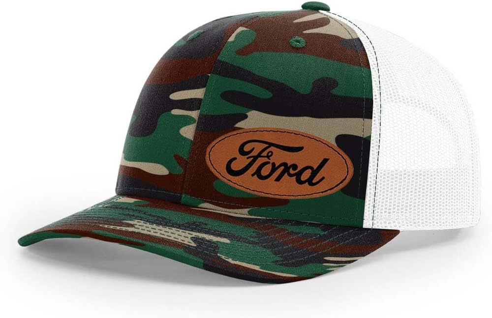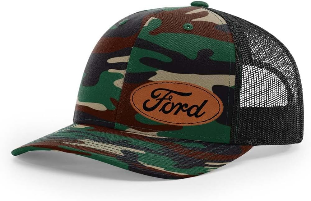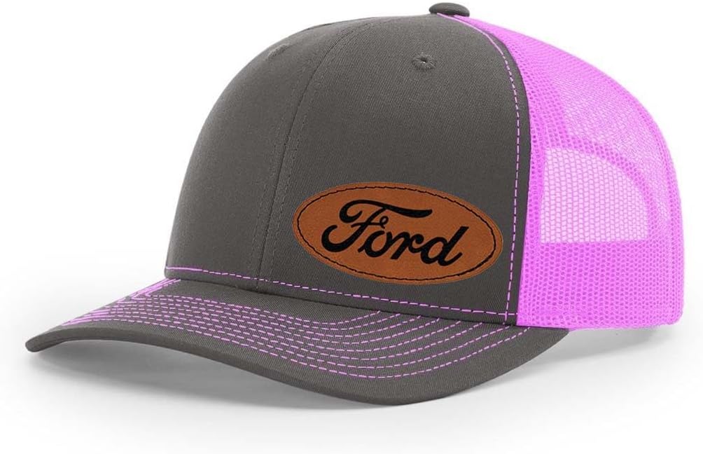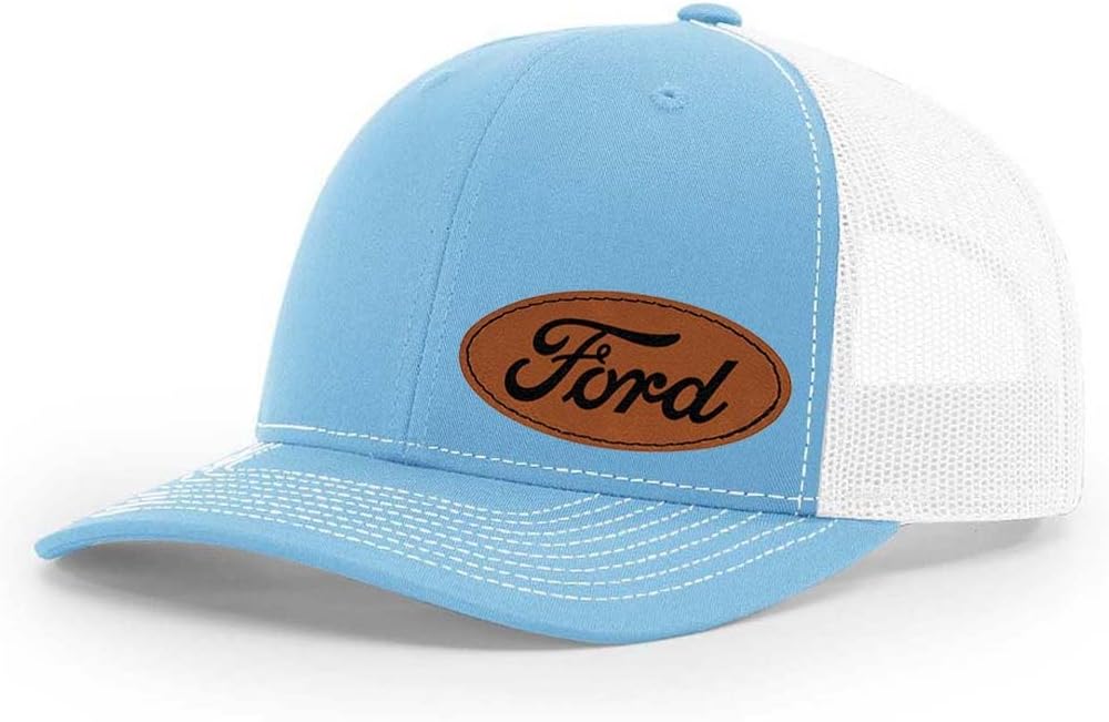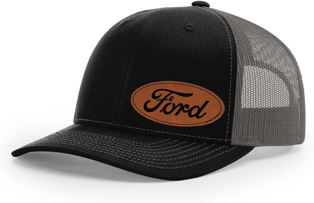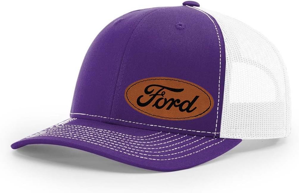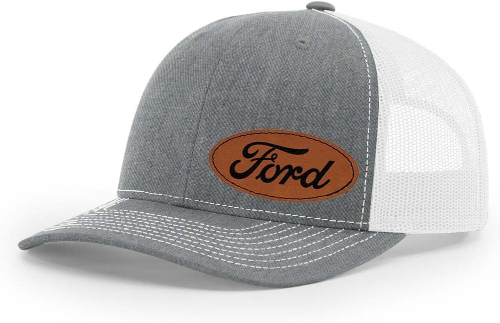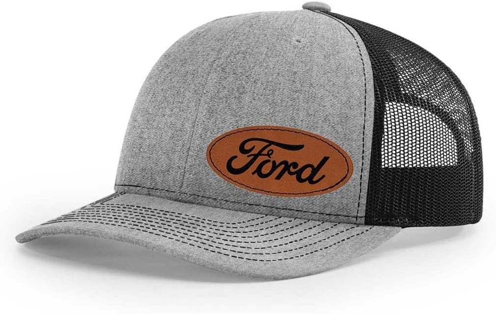 Laser Engraved Leather Patch; 60% polyester, 40% cotton; mesh back; 6-panel, structured, mid-profile; 3.5 inch crown; eight-row stitching on bill; hard buckram backed front panels; snapback closure; Silver underbill